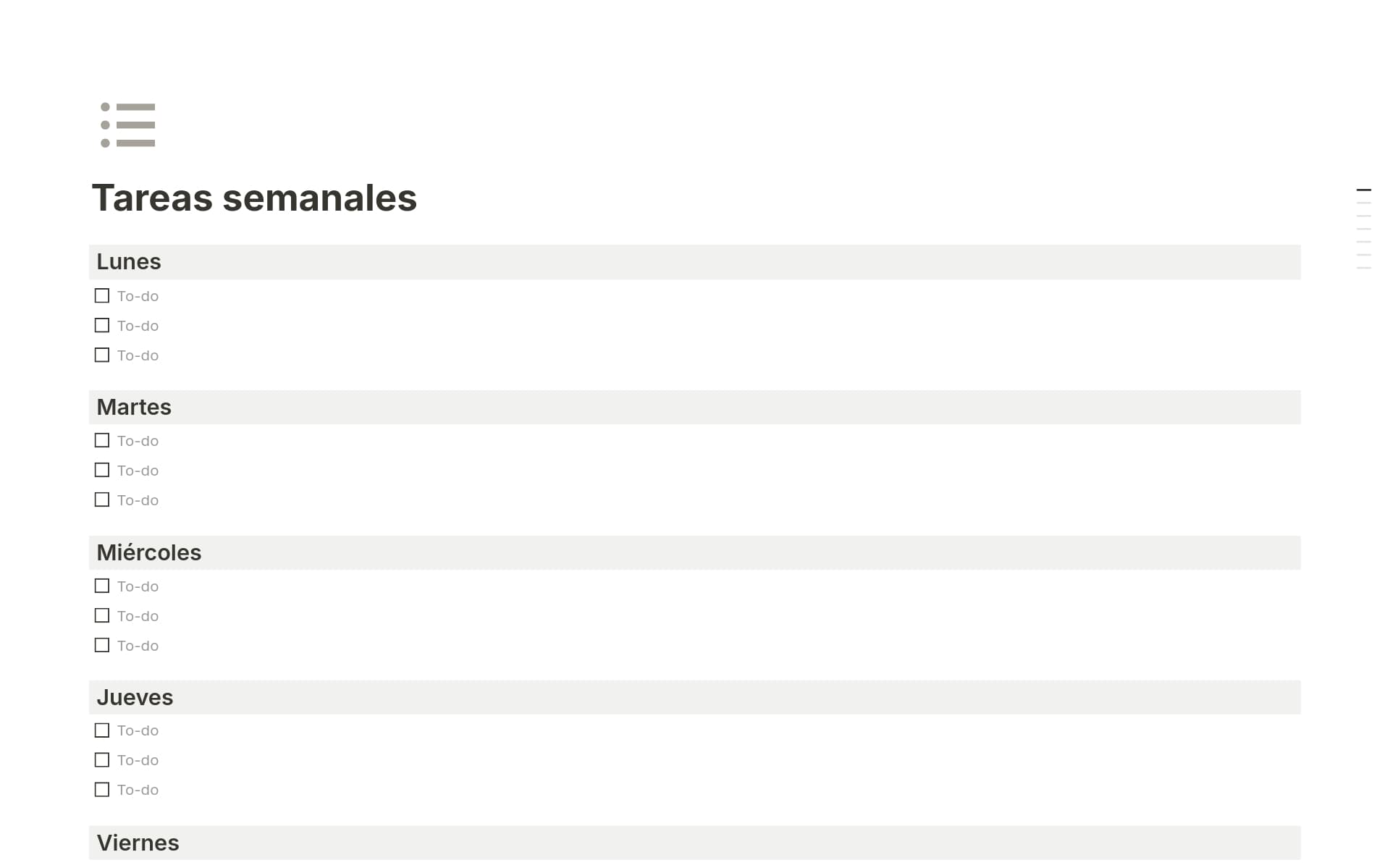 Esta plantilla, aunque básica me ha ayudado en entender como organizo mi tiempo y a optimizar el mismo. Básica y efectiva.A