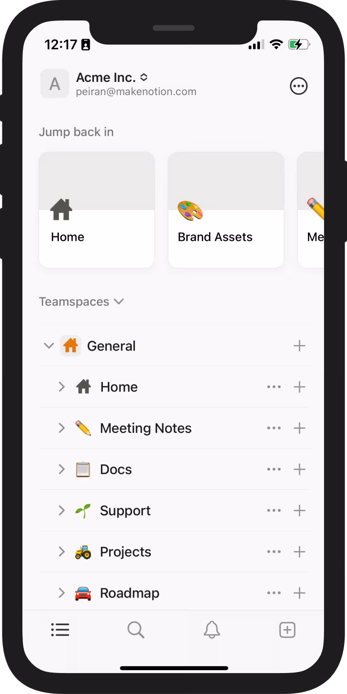 Toda a potência do Notion, diretamente no seu celular.